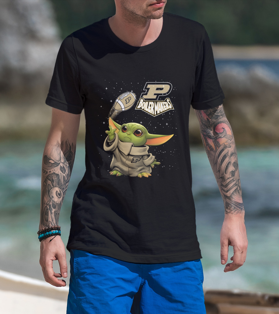 The Baby Yoda Football Fantasy with Purdue Boilermakers T-shirt is designed for everyday wear and a consistent fit. Fabric is pre-shrunk ring-spun cotton with durable stitching. See the size chart below for exact measurements.