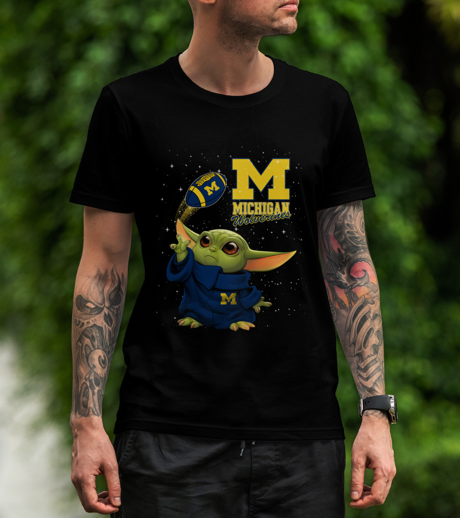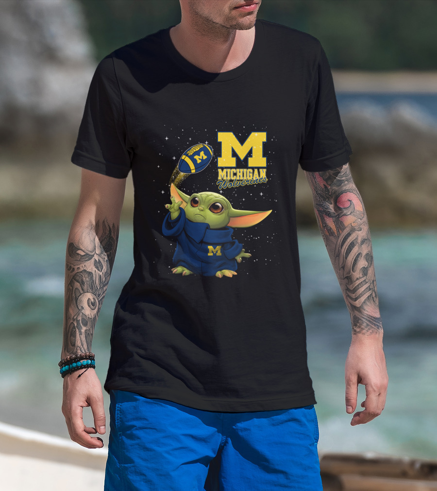 Baby Yoda Michigan Wolverines Football Fan Gear Featuring Iconic Team Spirit T-Shirt