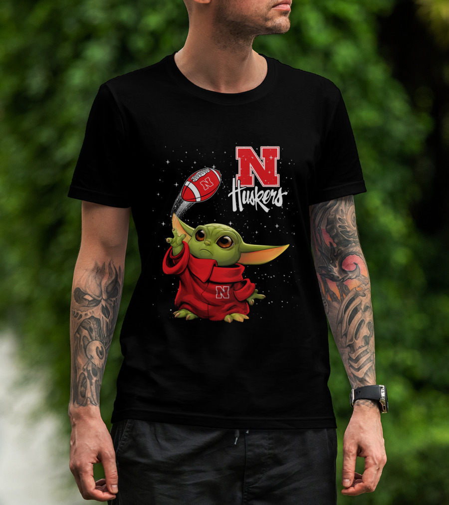 Baby Yoda Nebraska Cornhuskers N Huskers Football Throw T-Shirt