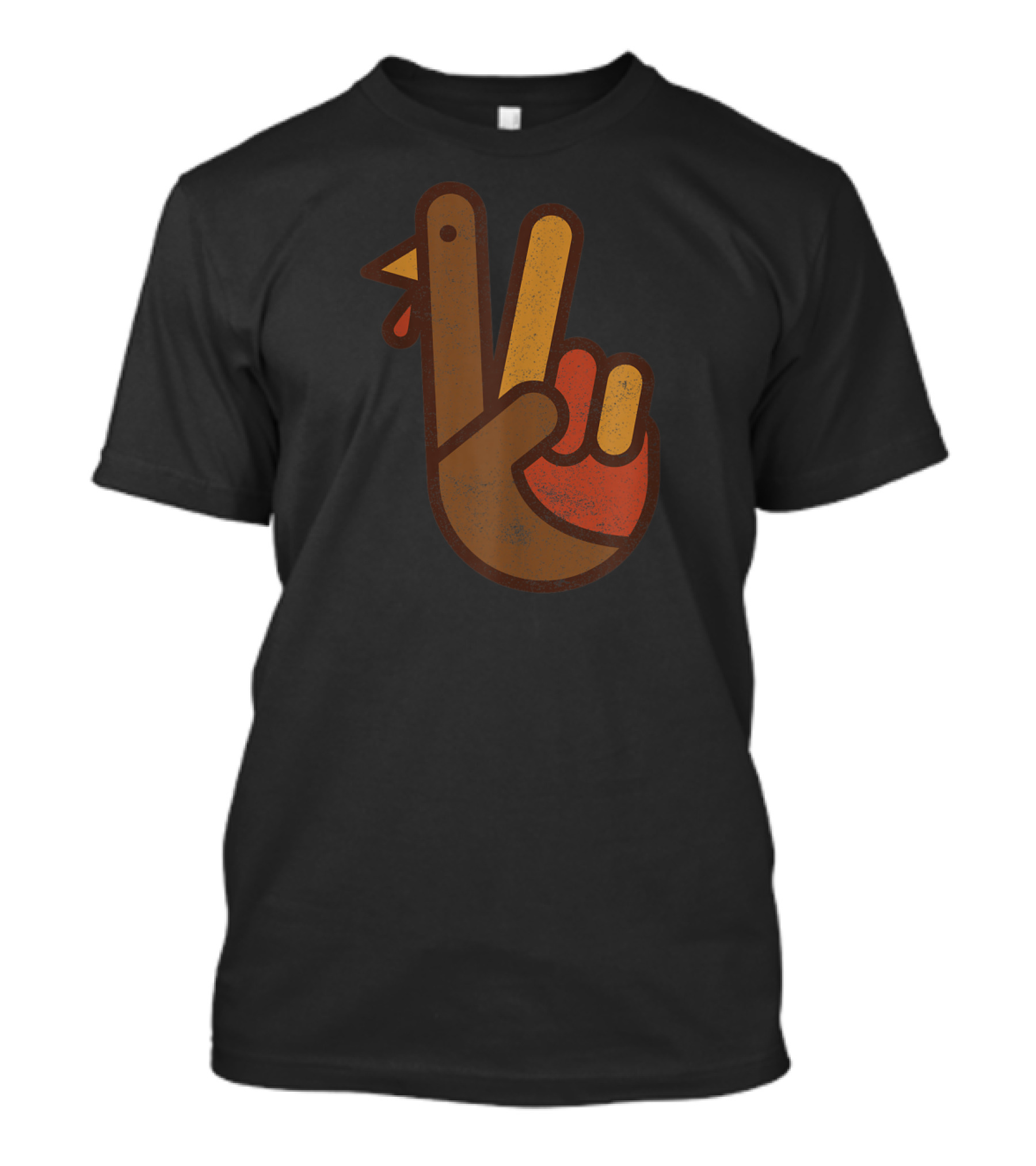 The Vintage Peace Sign Turkey Hand Thanksgiving Humor T-shirt is designed for everyday wear and a consistent fit. Fabric is pre-shrunk ring-spun cotton with durable stitching. See the size chart below for exact measurements.