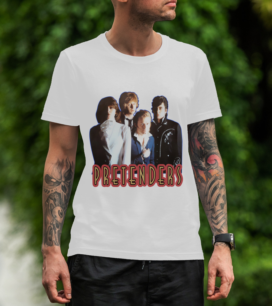 The Pretenders Band Group Photo T-shirt is designed for everyday wear and a consistent fit. Fabric is pre-shrunk ring-spun cotton with durable stitching. See the size chart below for exact measurements.