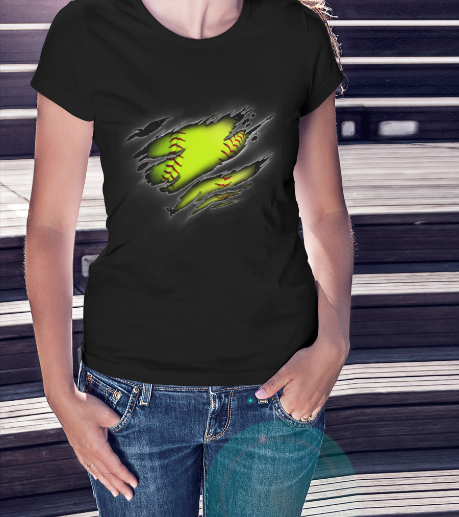 The Softball Inside Me Ripped Ball T-shirt is designed for everyday wear and a consistent fit. Fabric is pre-shrunk ring-spun cotton with durable stitching. See the size chart below for exact measurements.