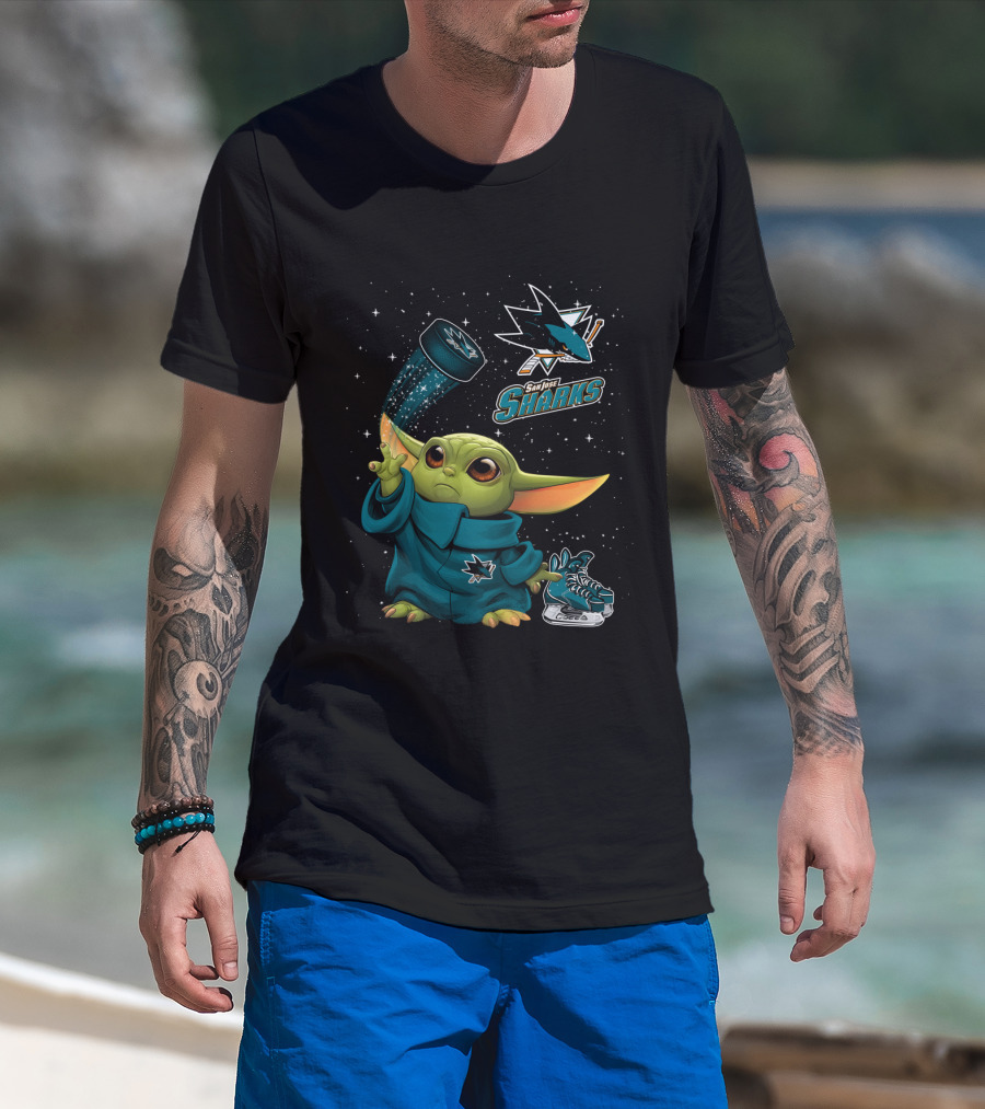 Baby Yoda San Jose Sharks Force Hockey Star Wars Crossover T-Shirt