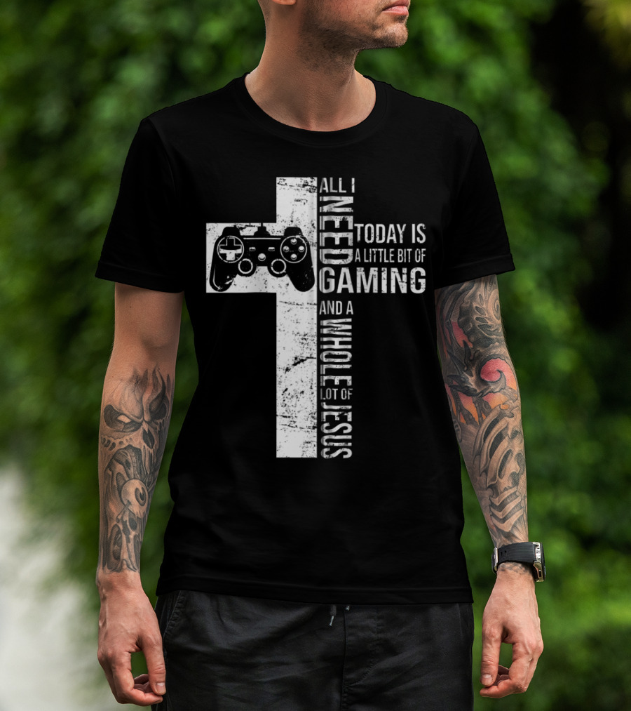 All I Need Today Is A Little Bit Of Gaming And A Whole Lot Of Jesus Cross Controller T-Shirt