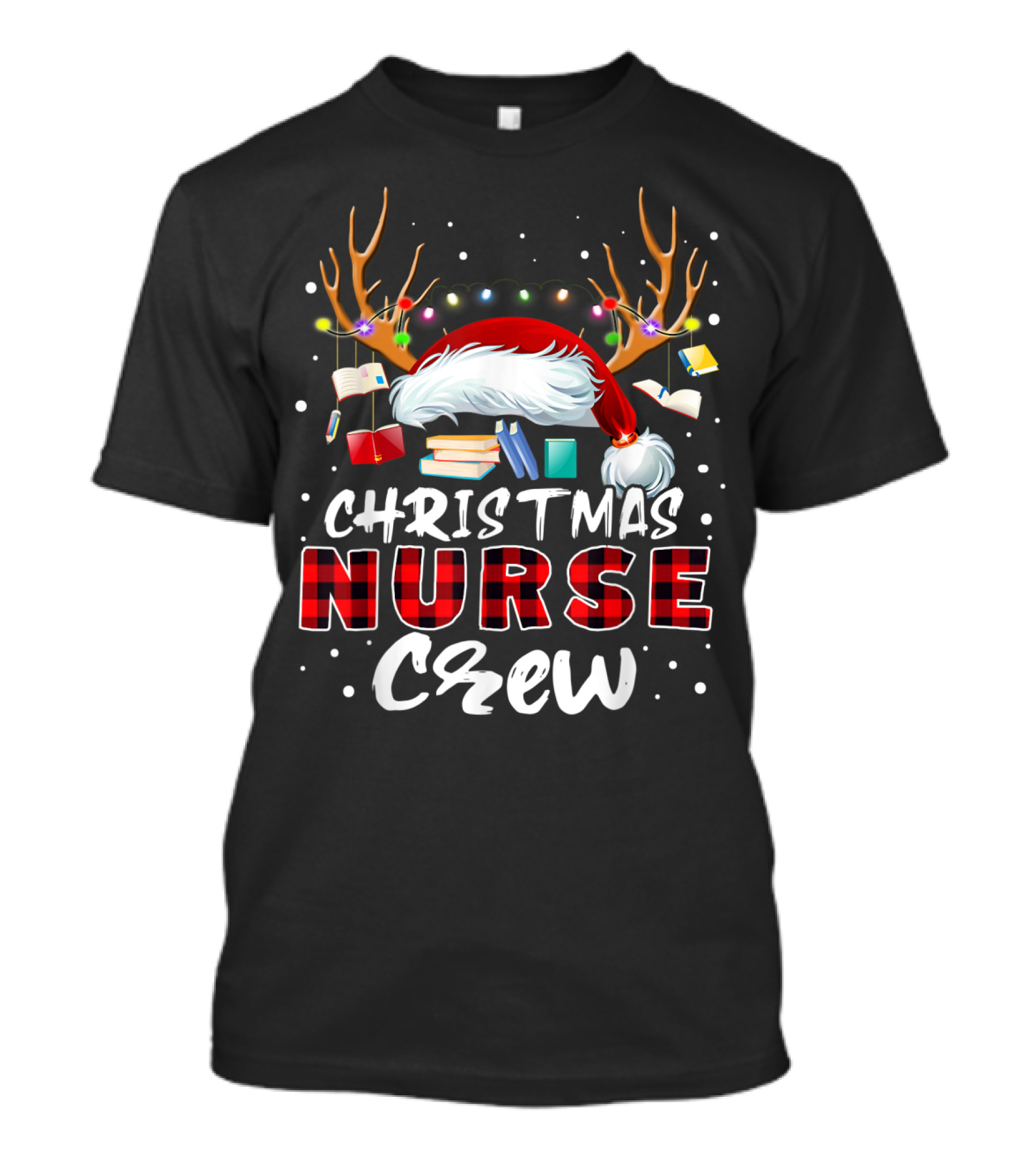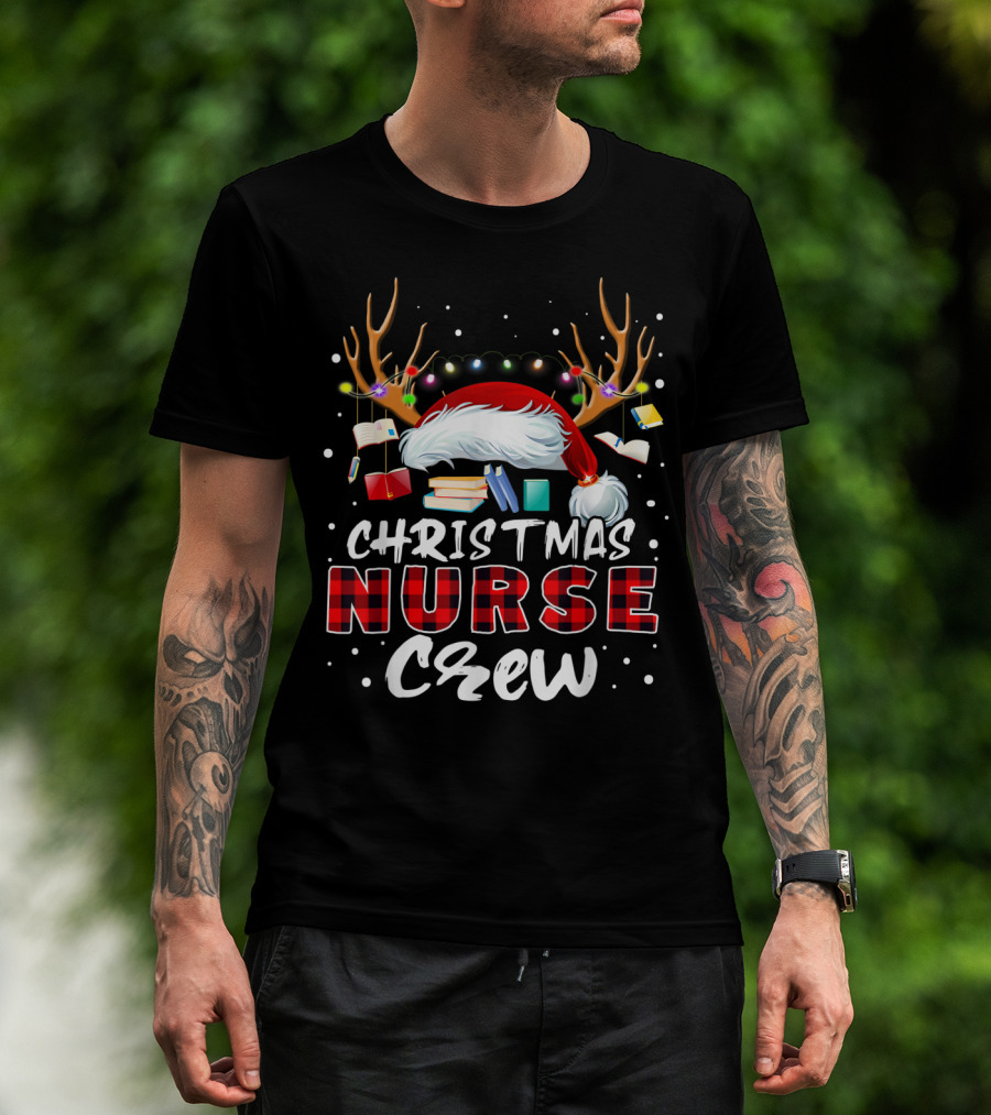 Christmas Nurse Crew RN LPN Santa Hat Reindeer Holiday Lights T-Shirt
