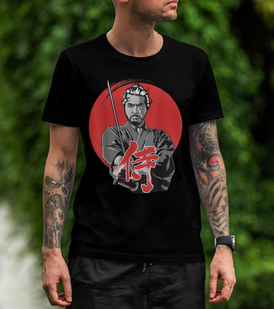 The Samurai Warrior with Katana Red Sun Background T-shirt is designed for everyday wear and a consistent fit. Fabric is pre-shrunk ring-spun cotton with durable stitching. See the size chart below for exact measurements.