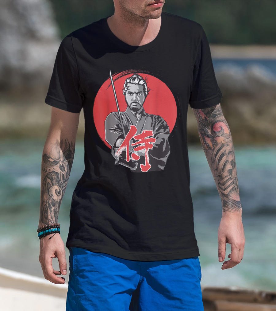 Samurai Warrior With Katana Red Sun Background T-Shirt
