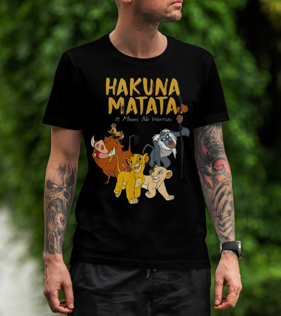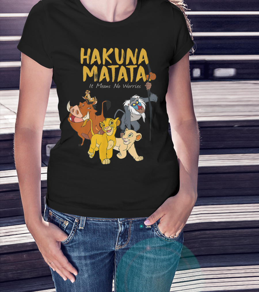 Hakuna Matata Disney Lion King It Means No Worries Characters Rafiki Simba Timon Pumbaa T-Shirt