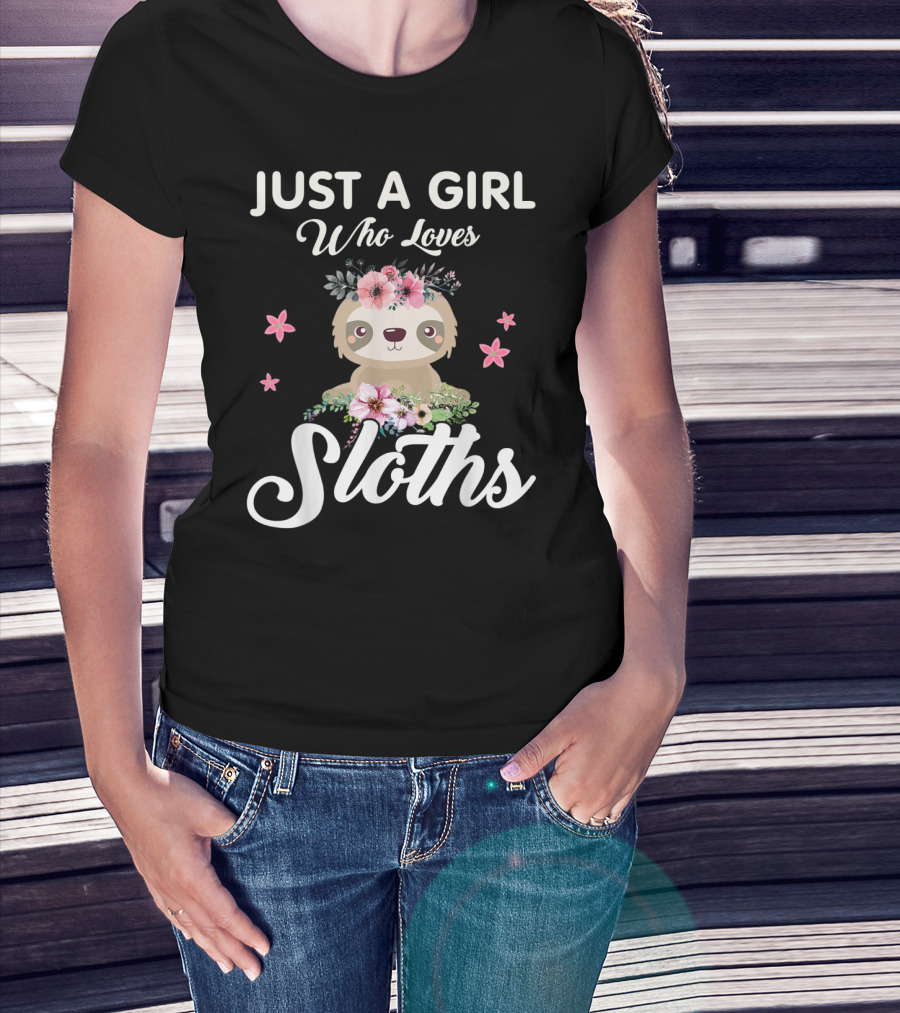 Just A Girl Who Loves Sloths With Floral Accents T-Shirt