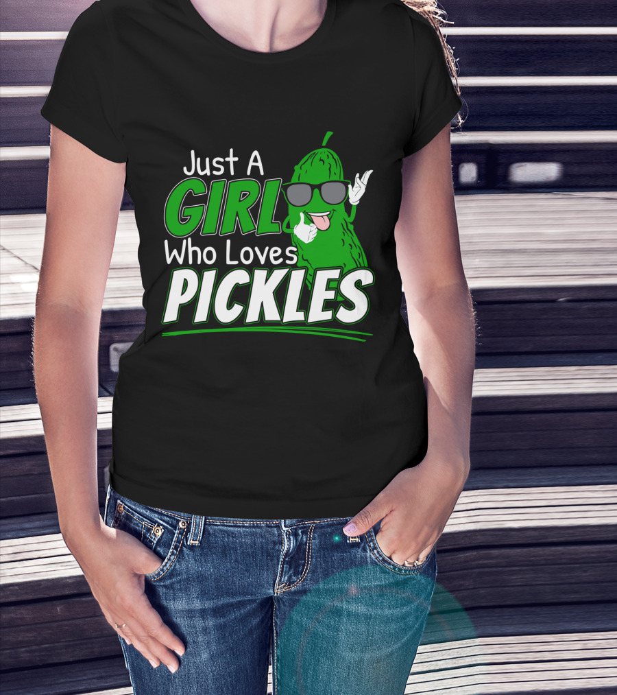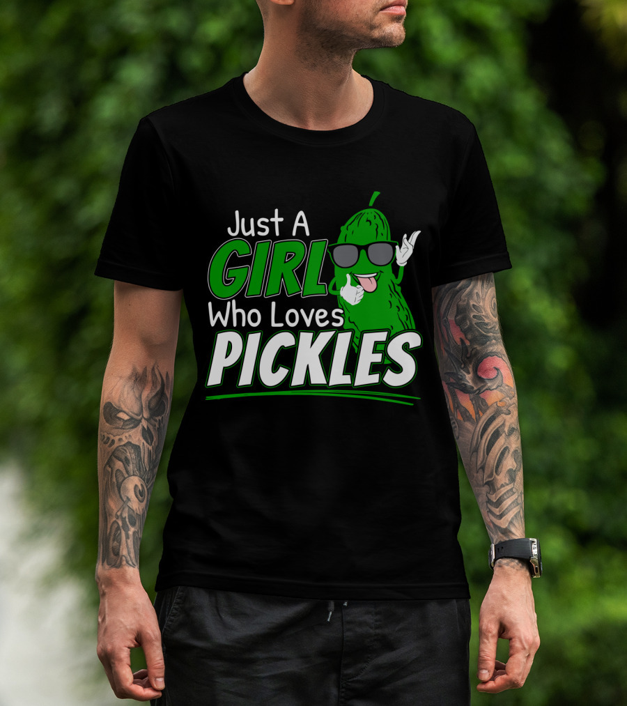 Just A Girl Who Loves Pickles Cool Sunglasses Pickle Character T-Shirt