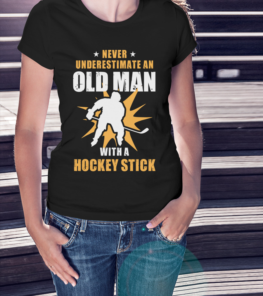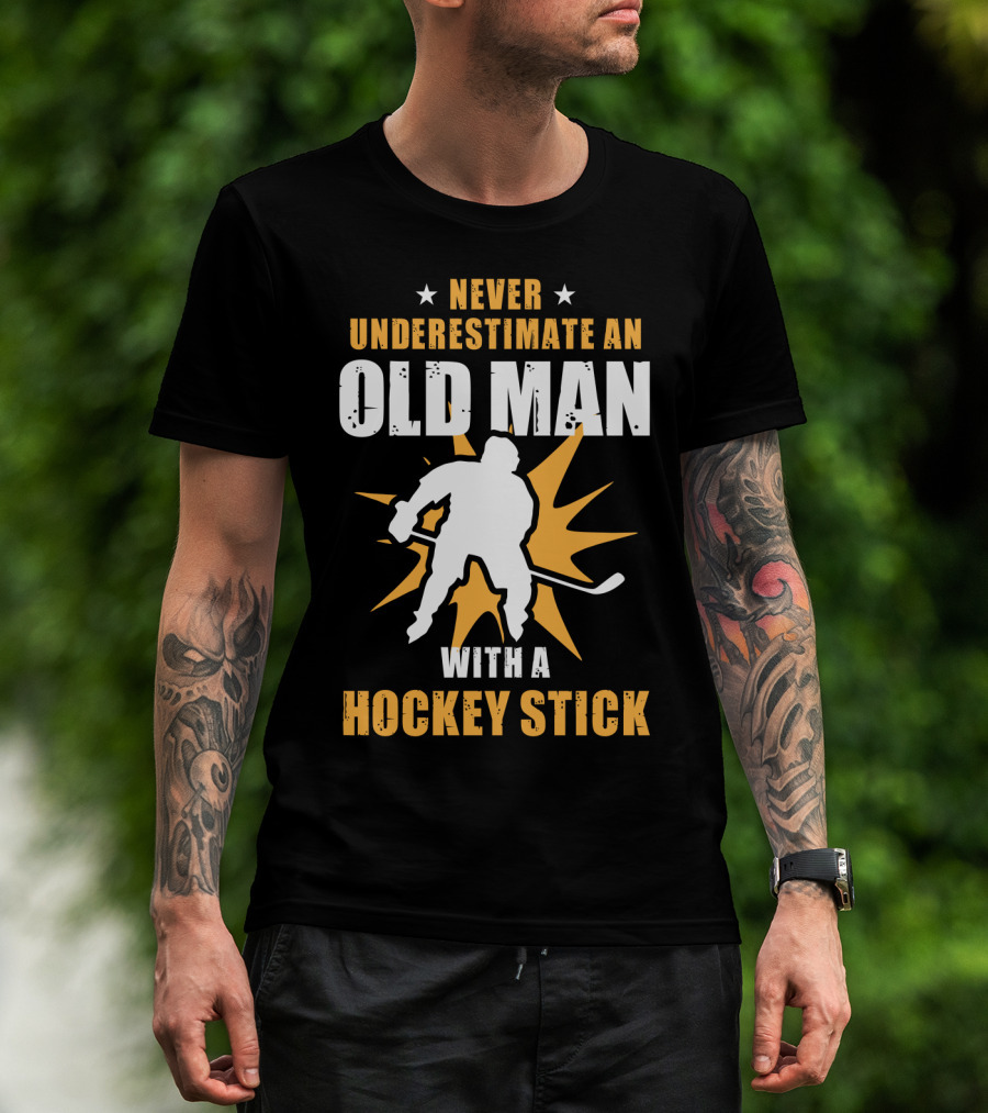 Never Underestimate An Old Man With A Hockey Stick Silhouette Starburst T-Shirt