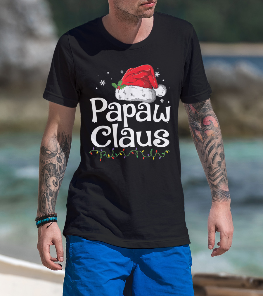 Papaw Claus Christmas Santa Hat With Snowflakes And Holiday Lights T-Shirt
