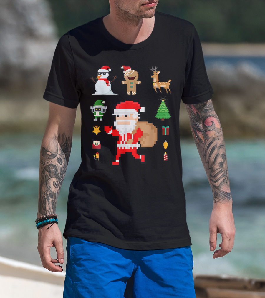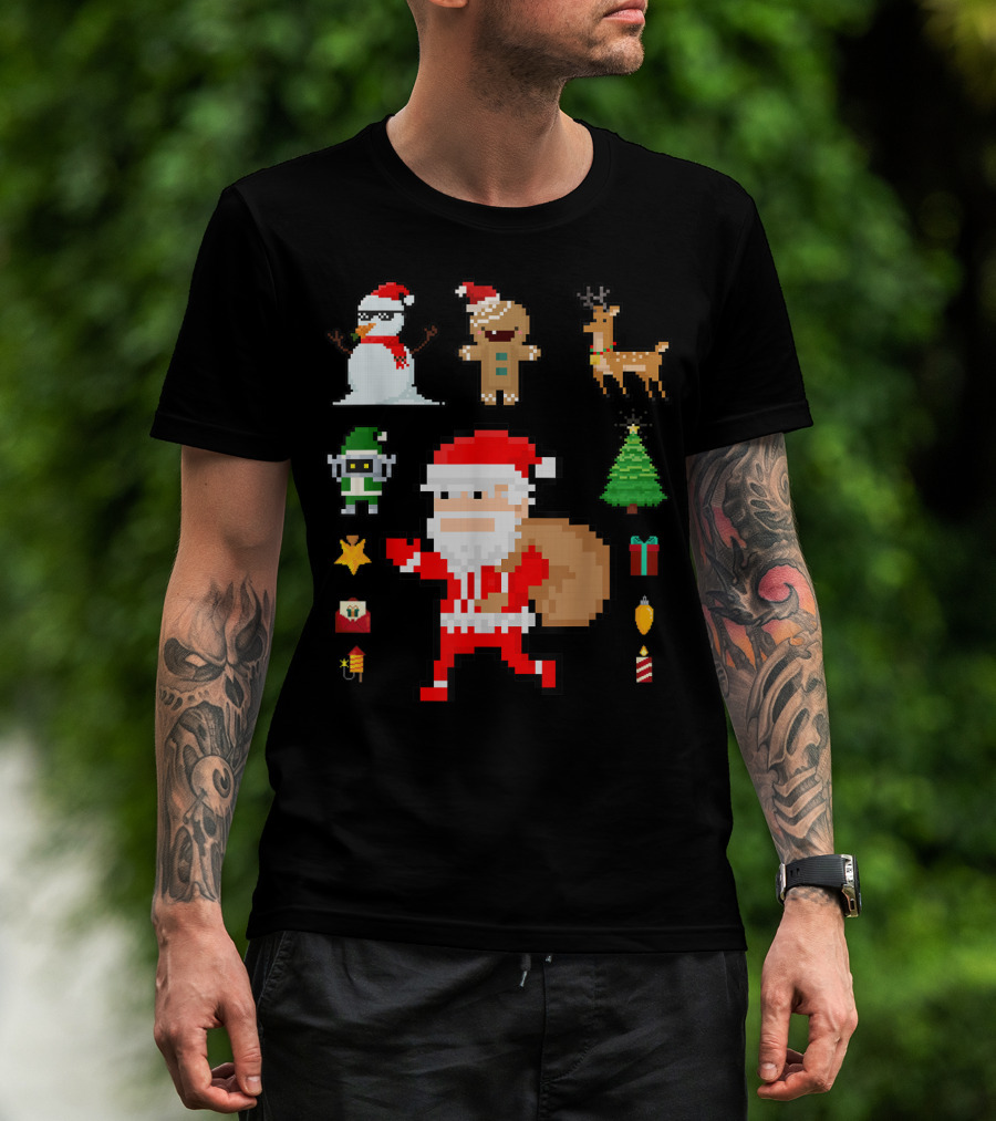 Pixel 8Bit Santa Claus Snowman Gingerbread Reindeer Christmas Tree Gifts Gaming T-Shirt