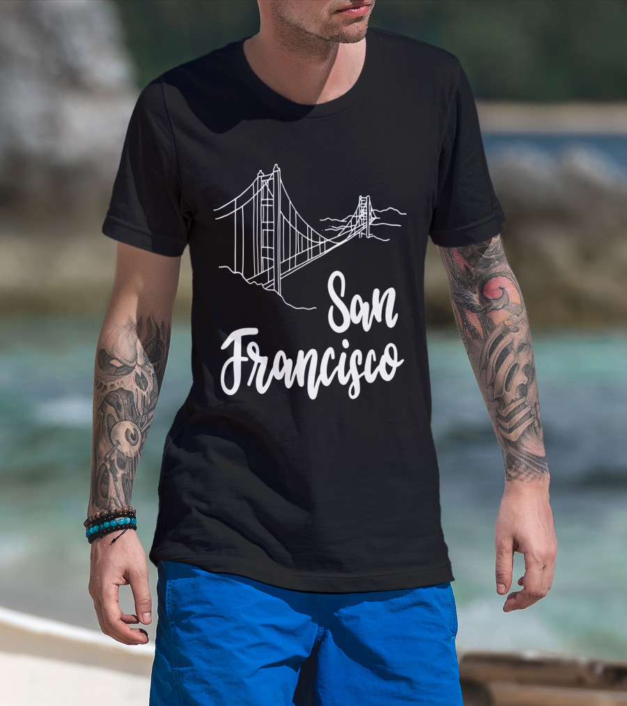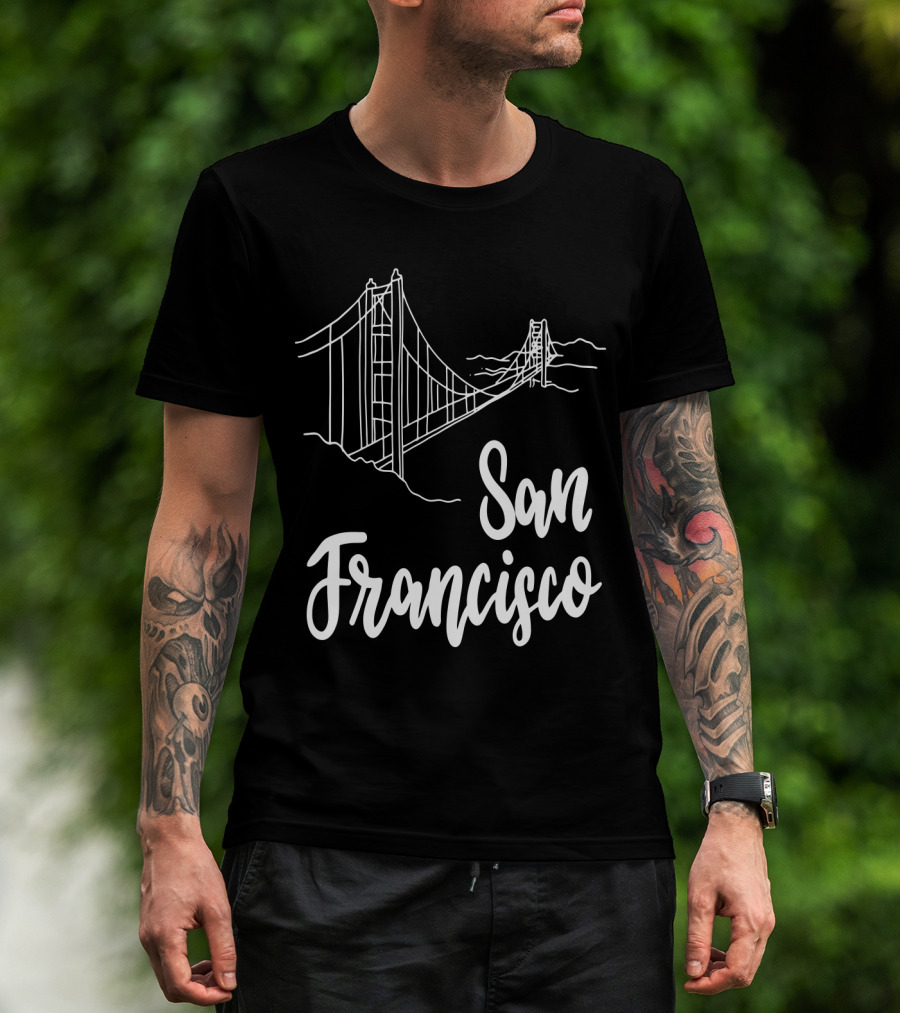 The San Francisco Golden Gate Bridge California State T-shirt is designed for everyday wear and a consistent fit. Fabric is pre-shrunk ring-spun cotton with durable stitching. See the size chart below for exact measurements.