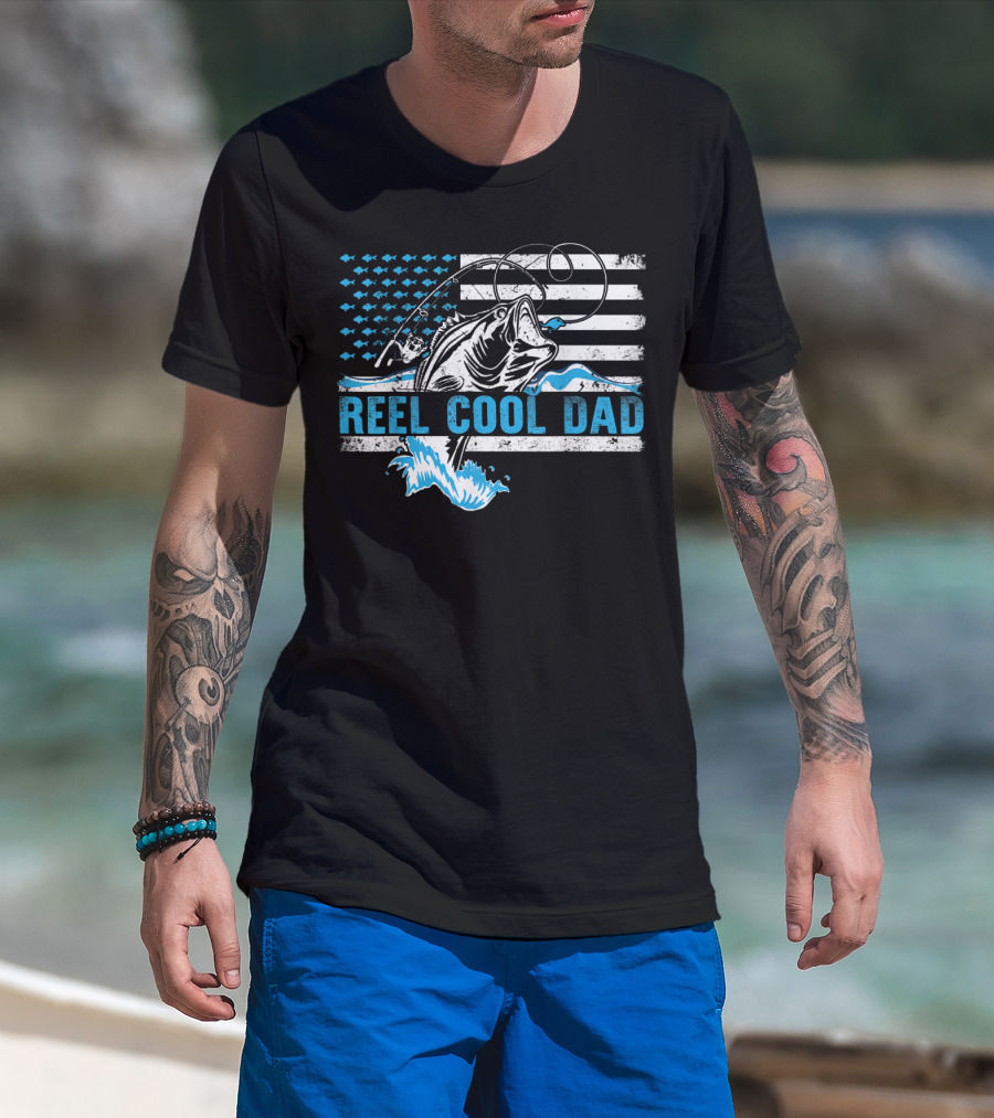 Reel Cool Dad Bass Fishing American Flag T-Shirt