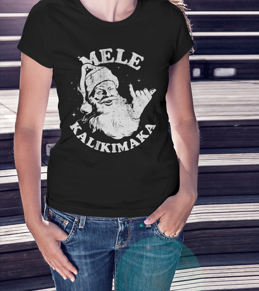 Retro Mele Kalikimaka Santa Shaka Hawaii Christmas T-Shirt