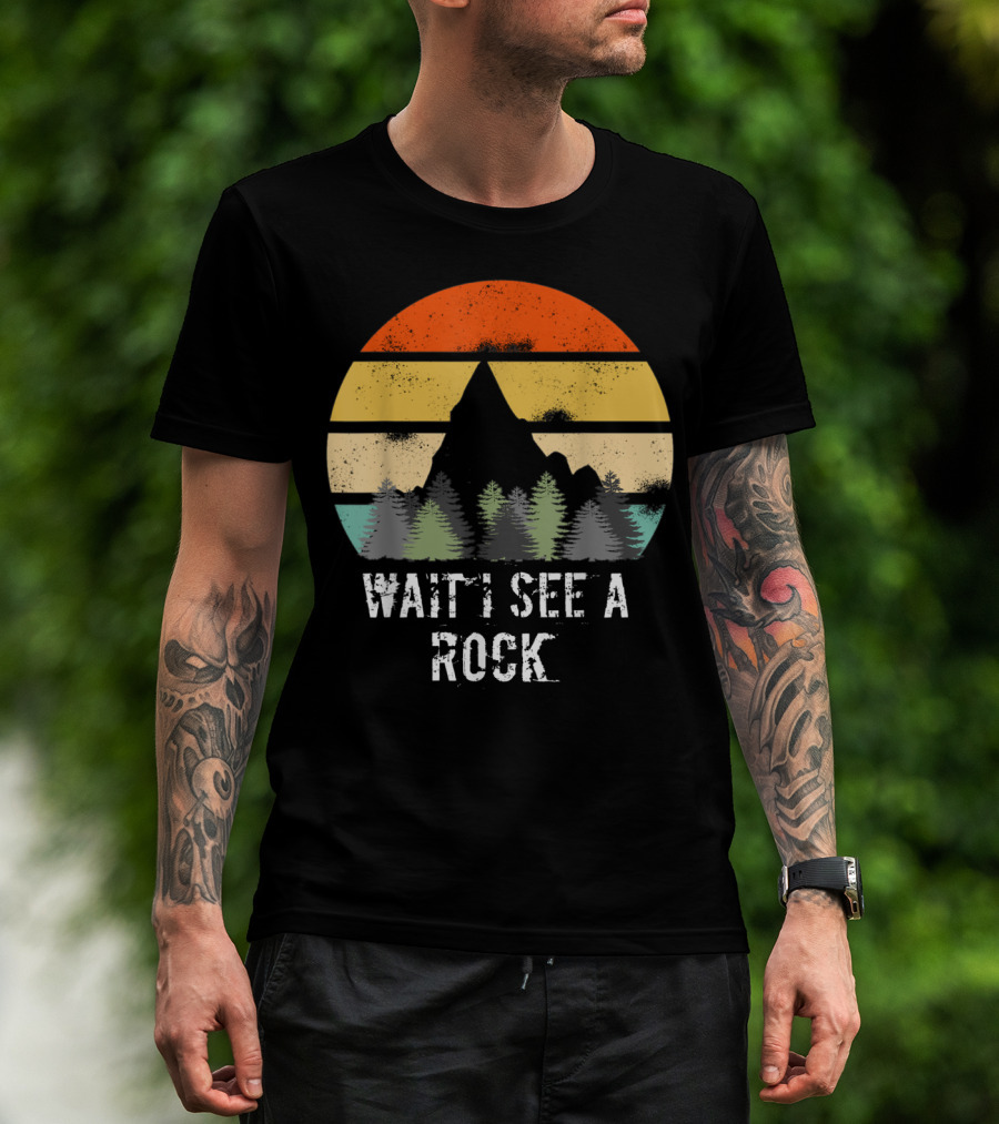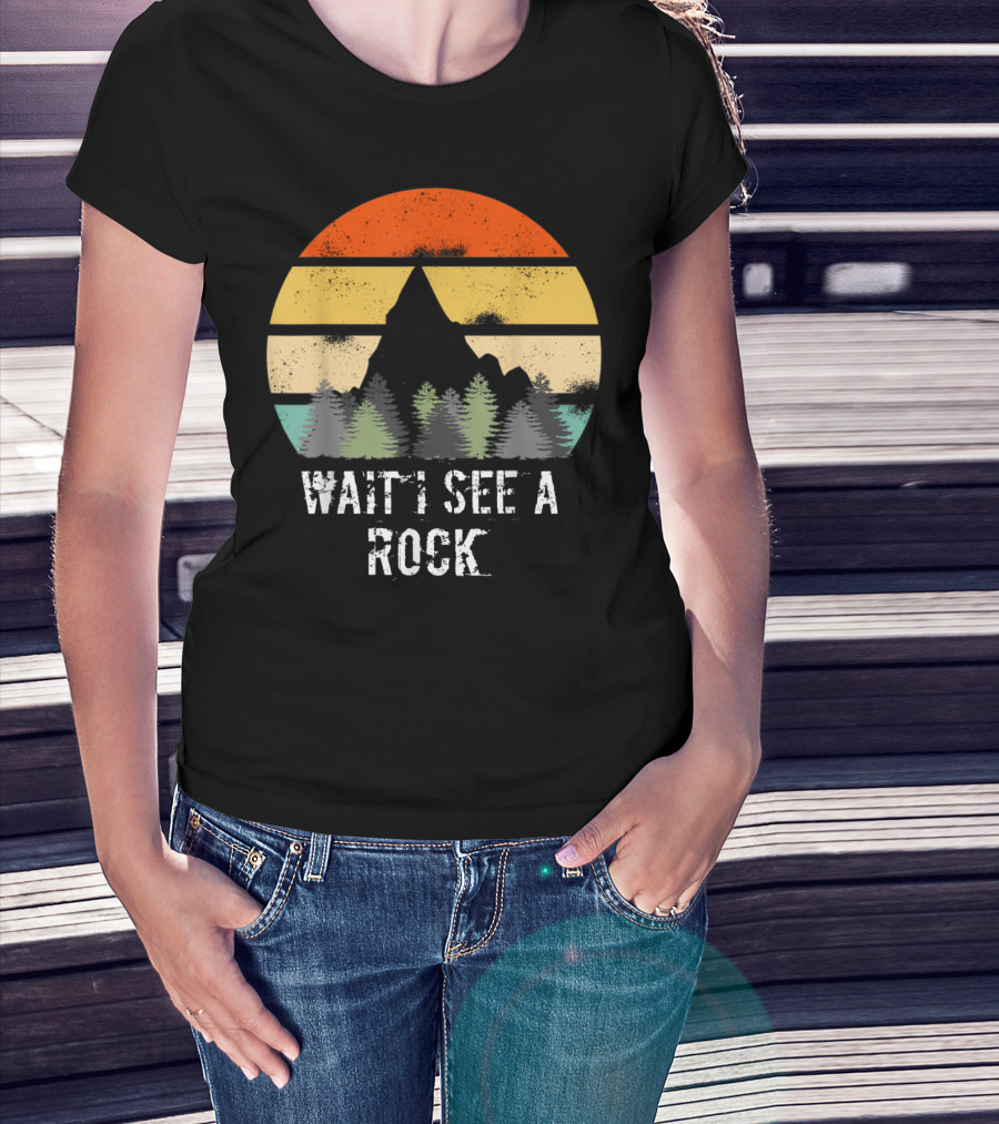Retro Vintage Wait I See A Rock Geologist Sunset Forest Scene T-Shirt