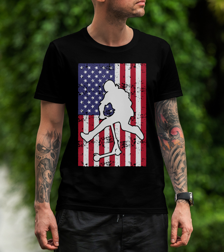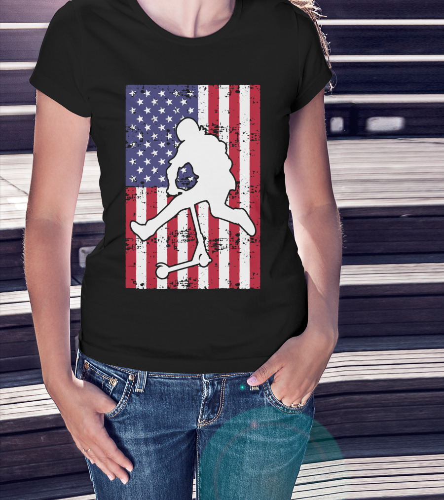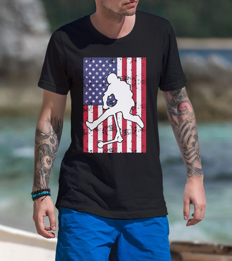 Stunt Scooter Trick With American Flag Background Competition T-Shirt