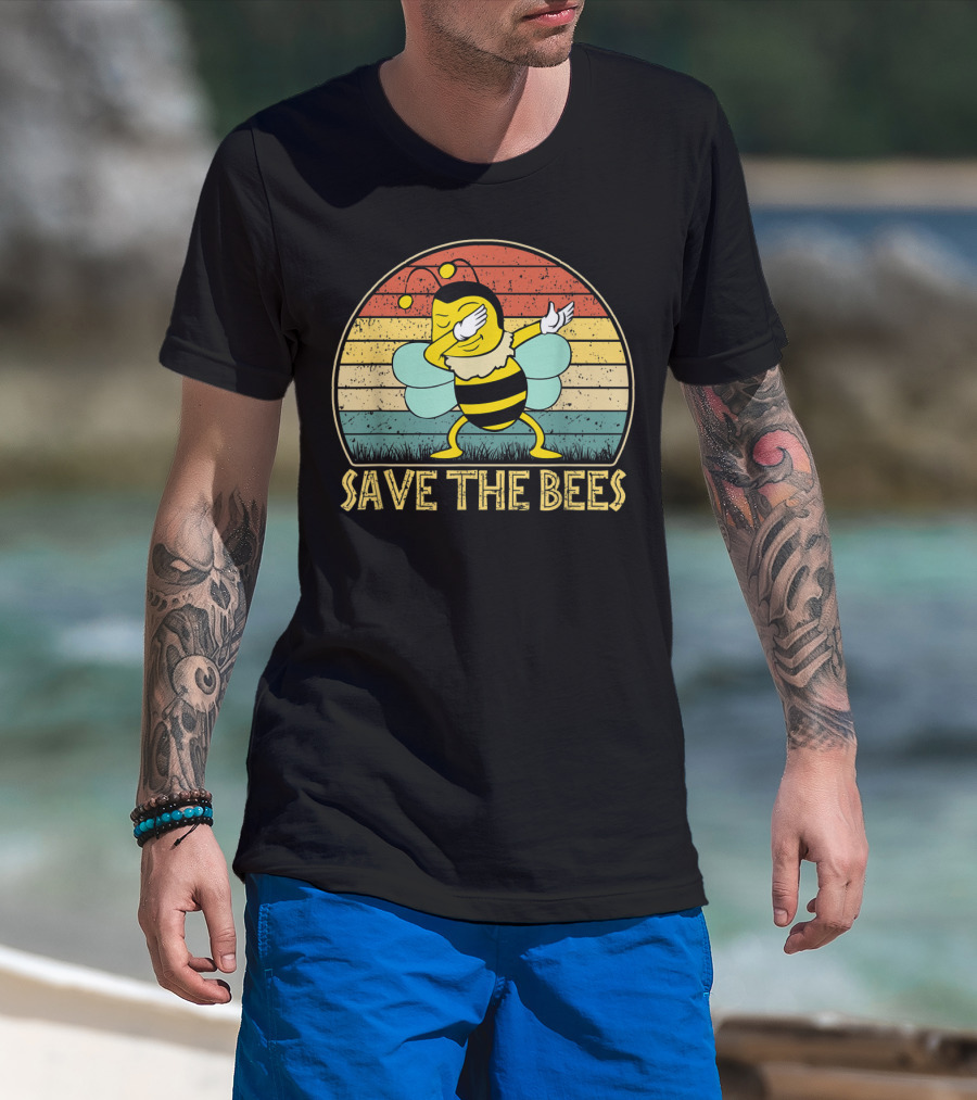 Save The Bees Vintage Dabbing Bee Retro Style Climate Change T-Shirt