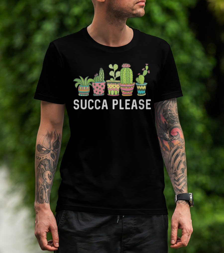 Succa Please Cactus Succulent Plant Mom Echeveria Cute Pots T-Shirt