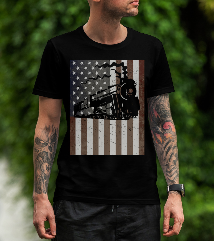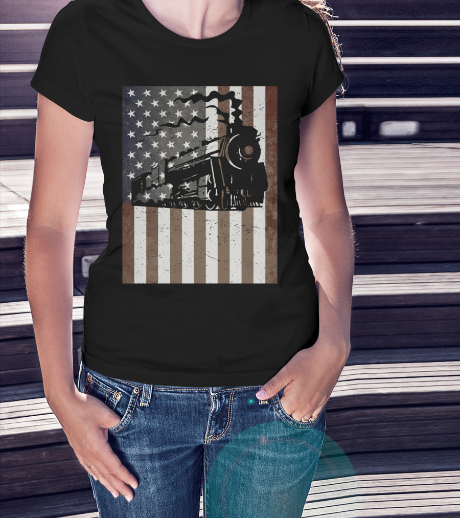 American Flag Steam Train Vintage Model Builder T-Shirt