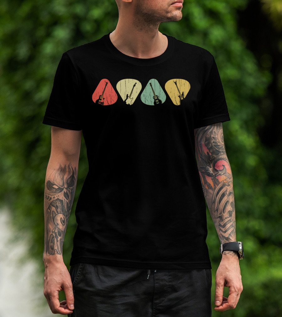 Vintage Guitar Pick Silhouettes Guitarist Costume Instrument T-Shirt