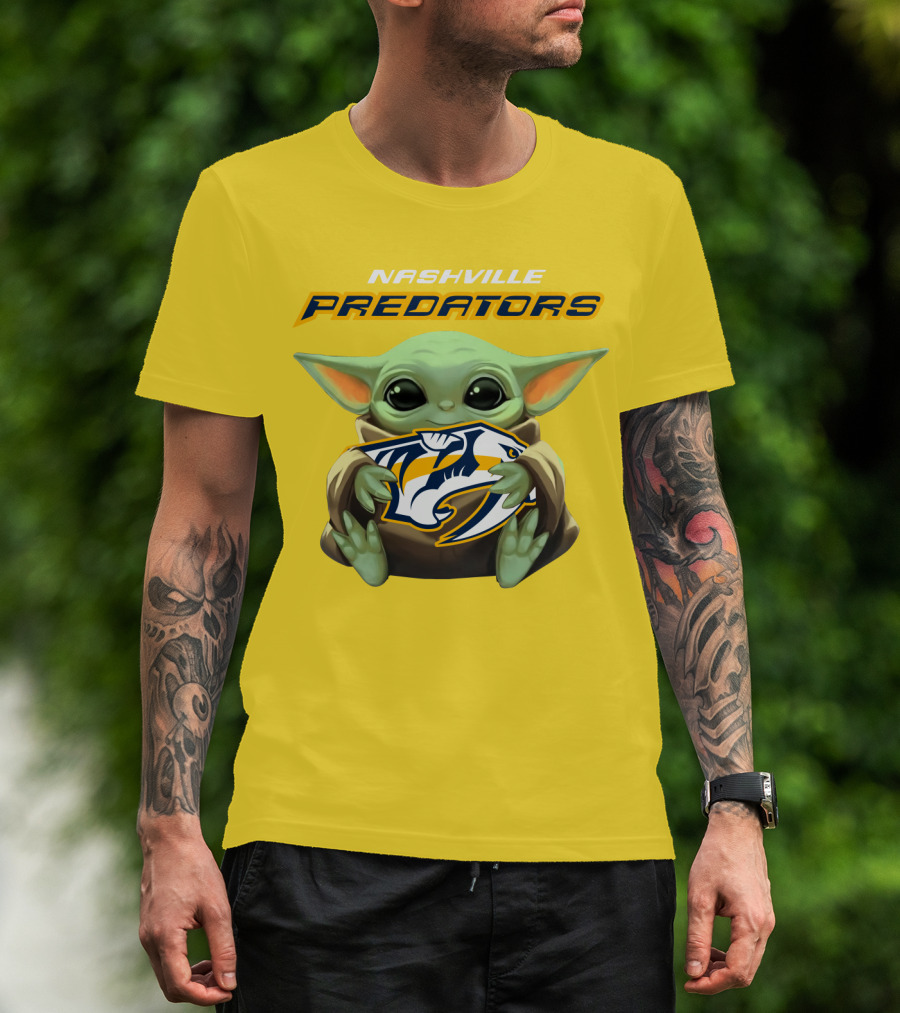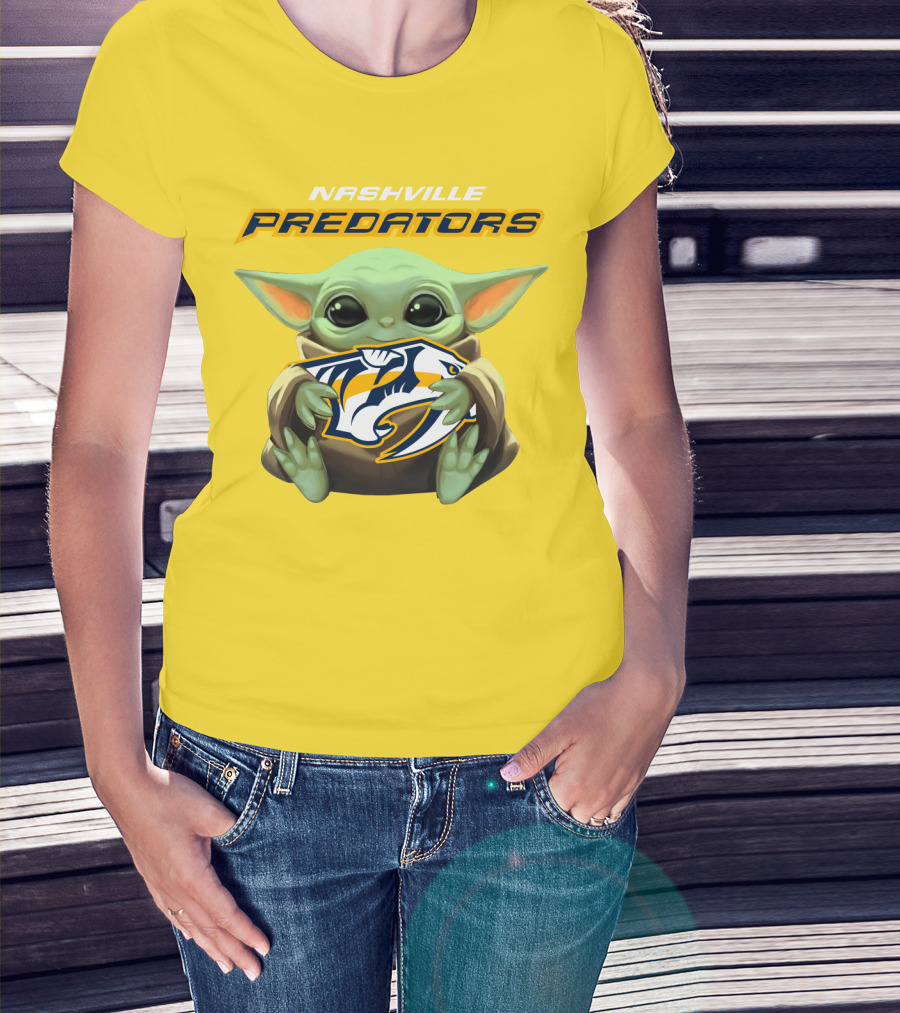 Nashville Predators Baby Yoda Hugging T-Shirt