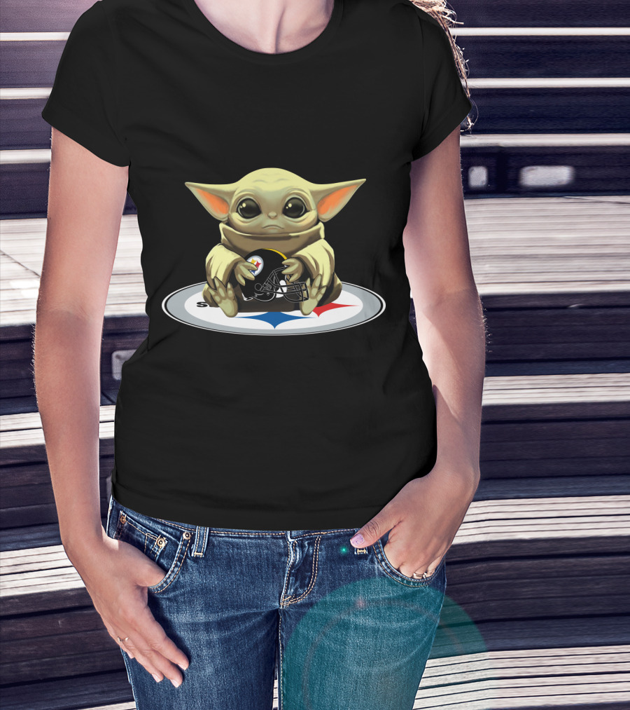 Baby Yoda Holding Steelers Football Helmet T-Shirt