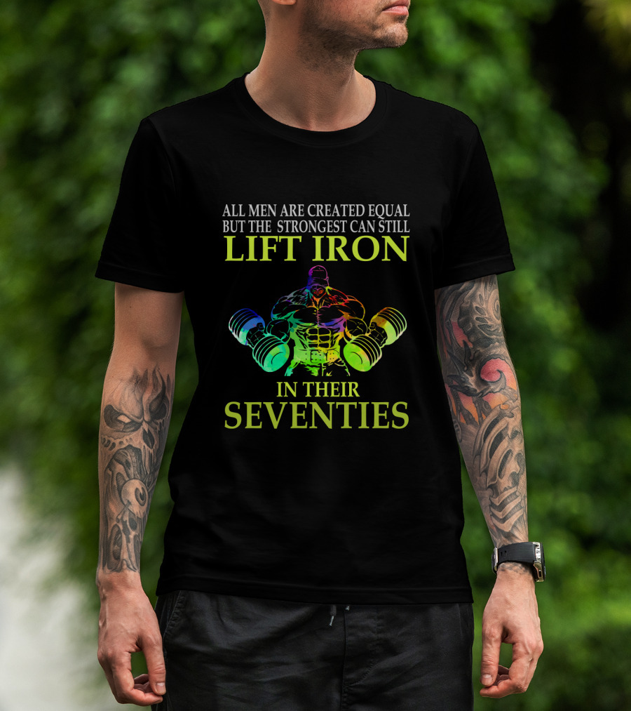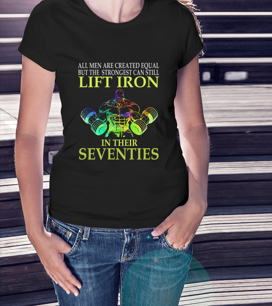 All Men Are Created Equal But The Strongest Can Still Lift Iron In Their Seventies T-Shirt