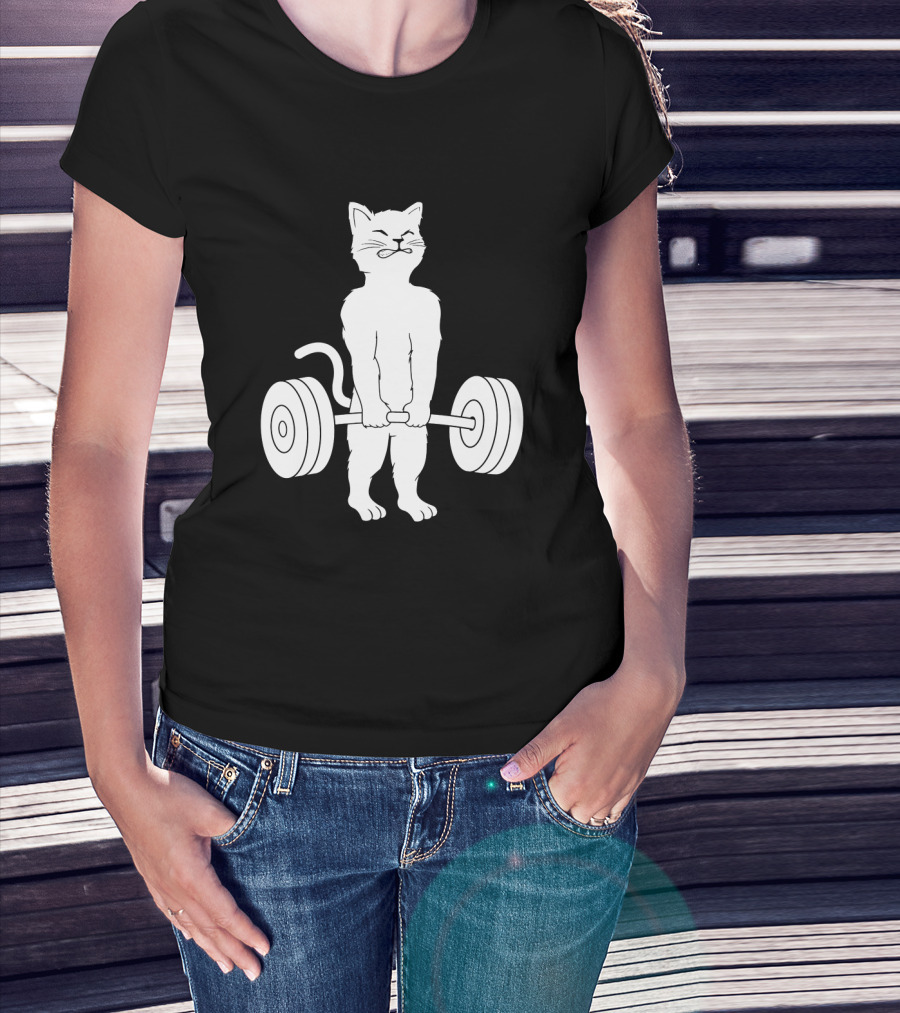 Weight Lifting Cat With Barbell Deadlift Strength Power T-Shirt