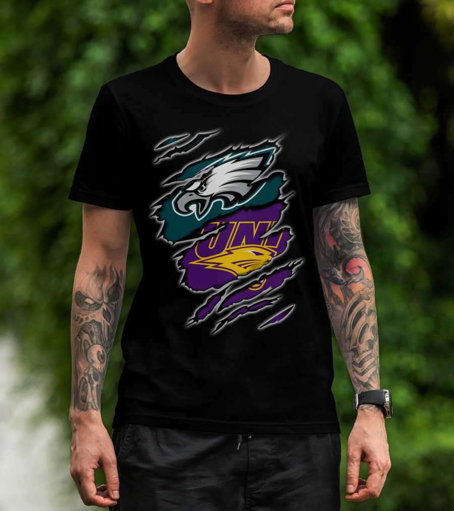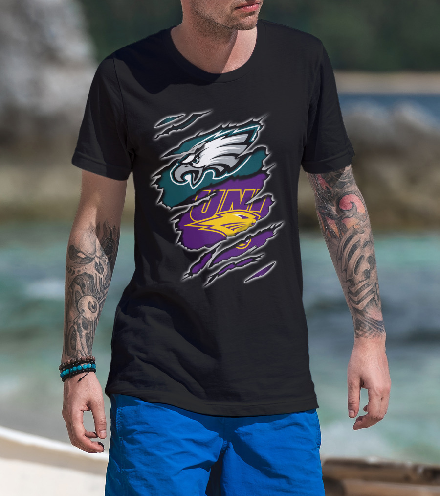The Eagles University UNI Panther Torn Rip T-shirt is designed for everyday wear and a consistent fit. Fabric is pre-shrunk ring-spun cotton with durable stitching. See the size chart below for exact measurements.