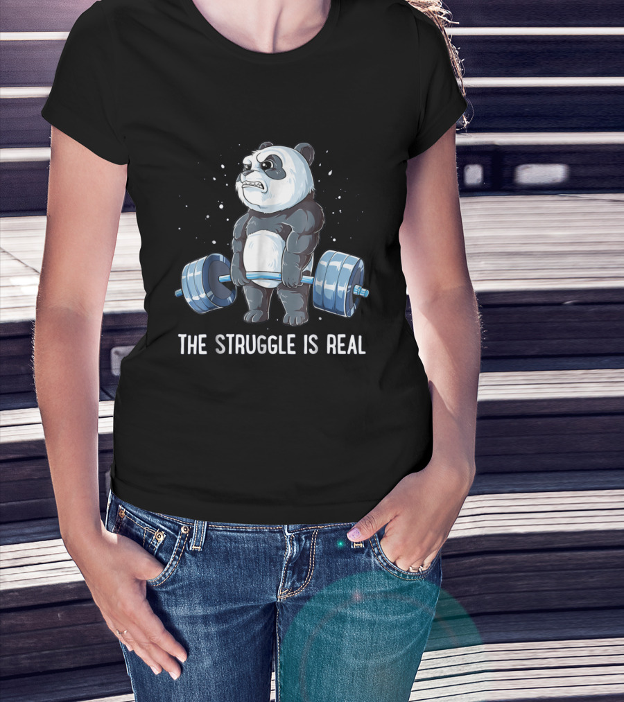 Panda Bear Lifting Weights The Struggle Is Real T-Shirt