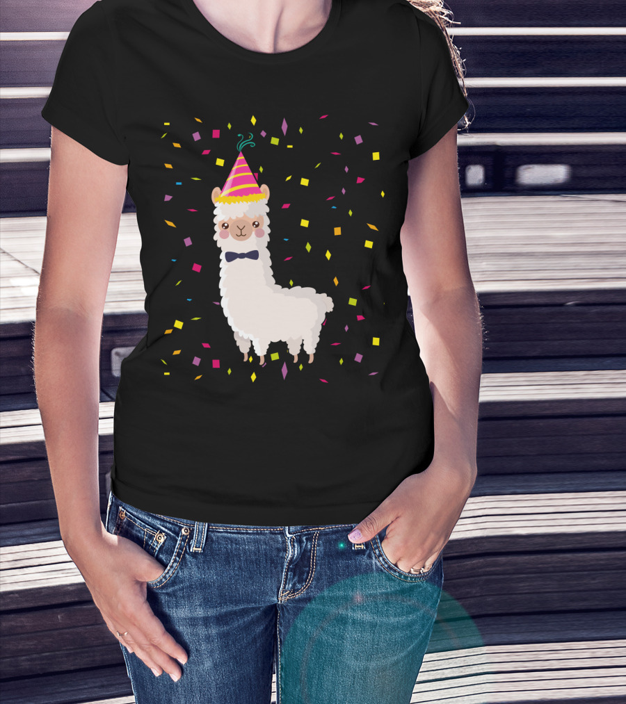 Funny Alpaca Birthday Party Celebration With Confetti T-Shirt
