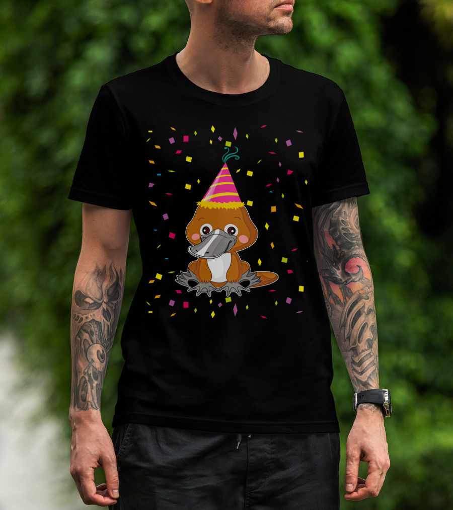 Funny Platypus With Party Hat And Confetti Celebration Birthday T-Shirt