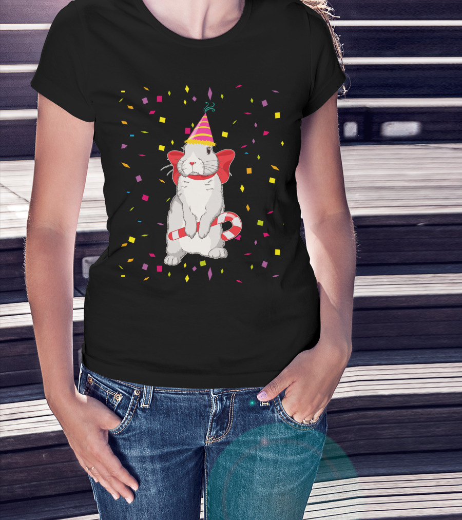 Funny Rabbit Birthday Party Hat Candy Cane Confetti T-Shirt