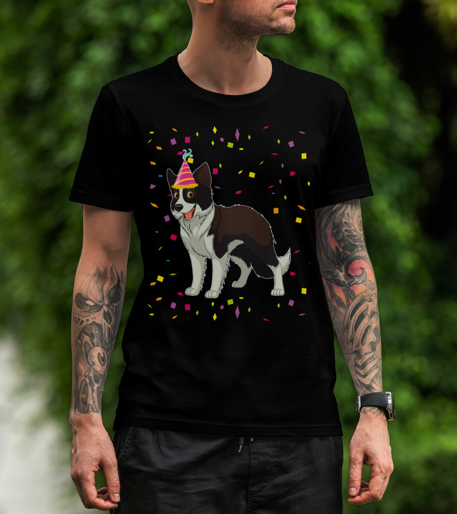 Funny Border Collie Birthday Party Hat Confetti T-Shirt