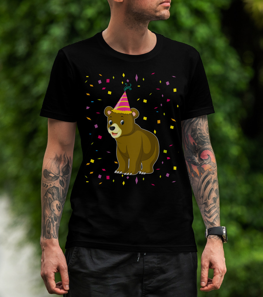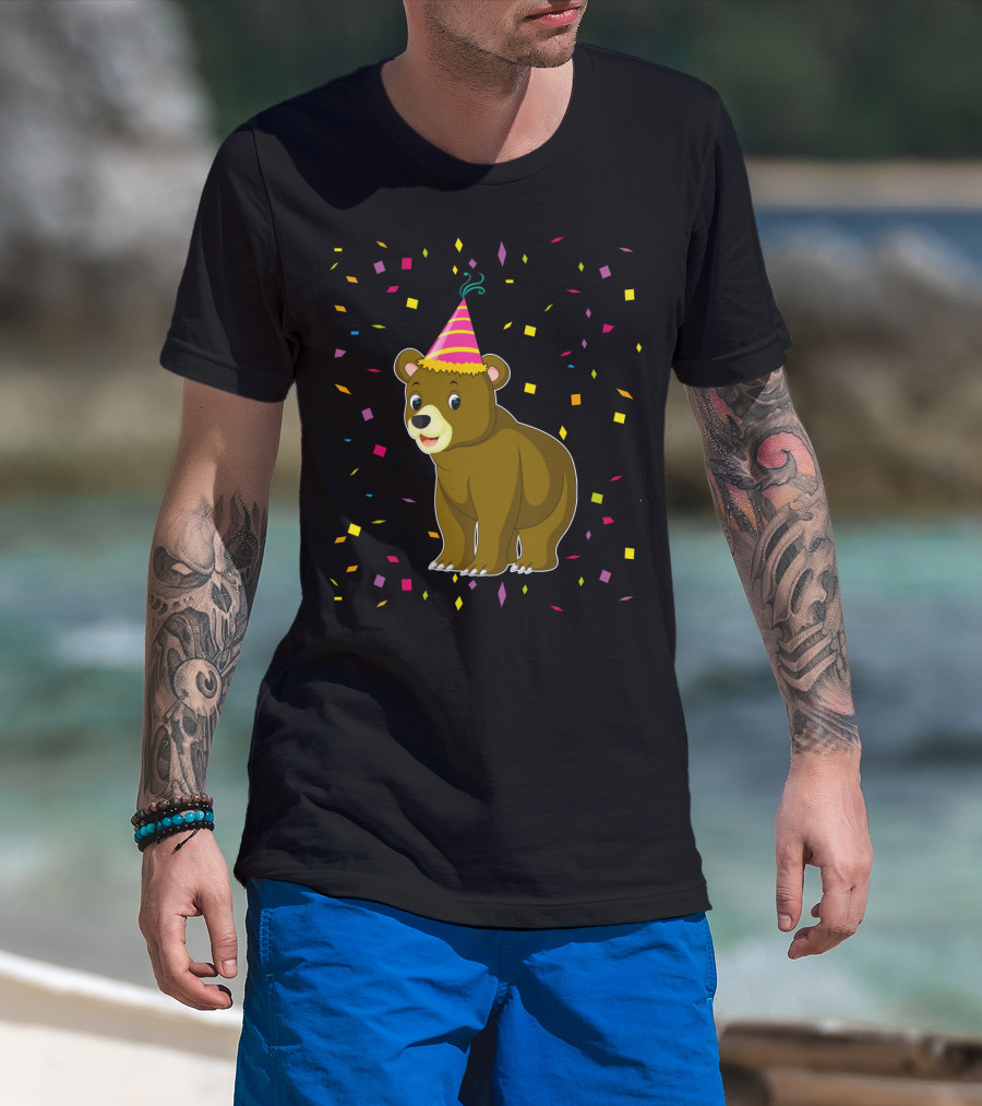 Funny Bear Birthday Party Hat Festive Confetti T-Shirt