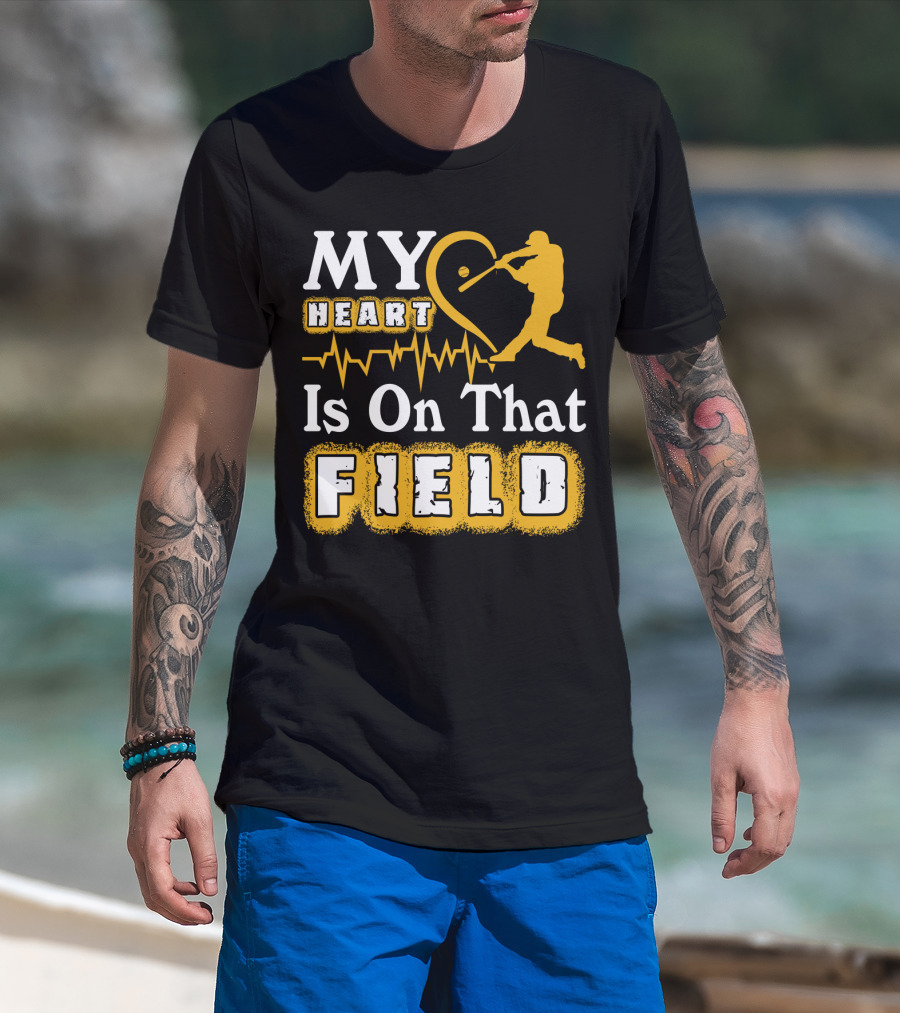 My Heart Is On That Field Baseball Lovers Swinging Batter Heartbeat T-Shirt