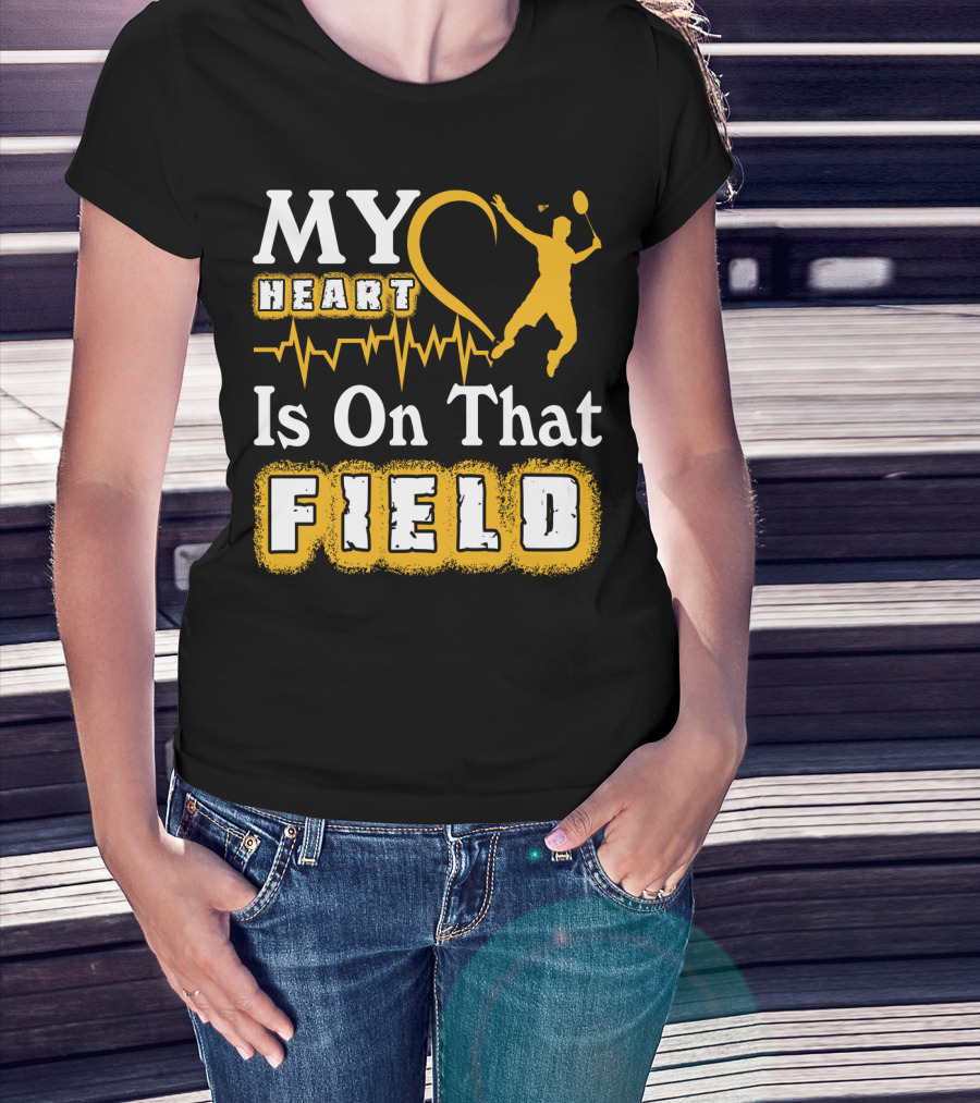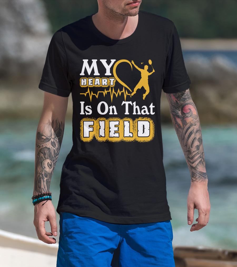 My Heart Is On That Field Badminton Player Pulse EKG T-Shirt