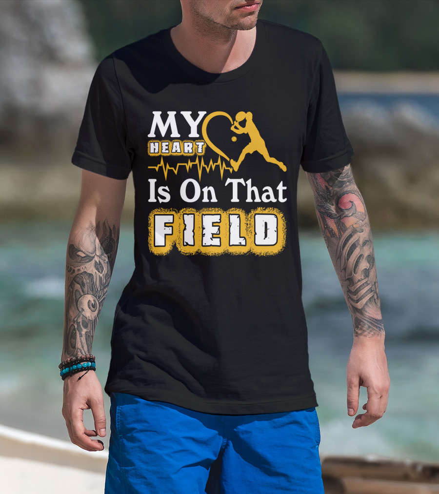 My Heart Is On That Field Tennis Player With Heartbeat And Ball T-Shirt
