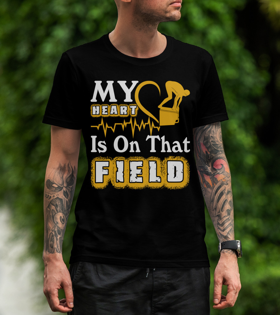 My Heart Is On That Field Swimming Dive Silhouette Heartbeat T-Shirt