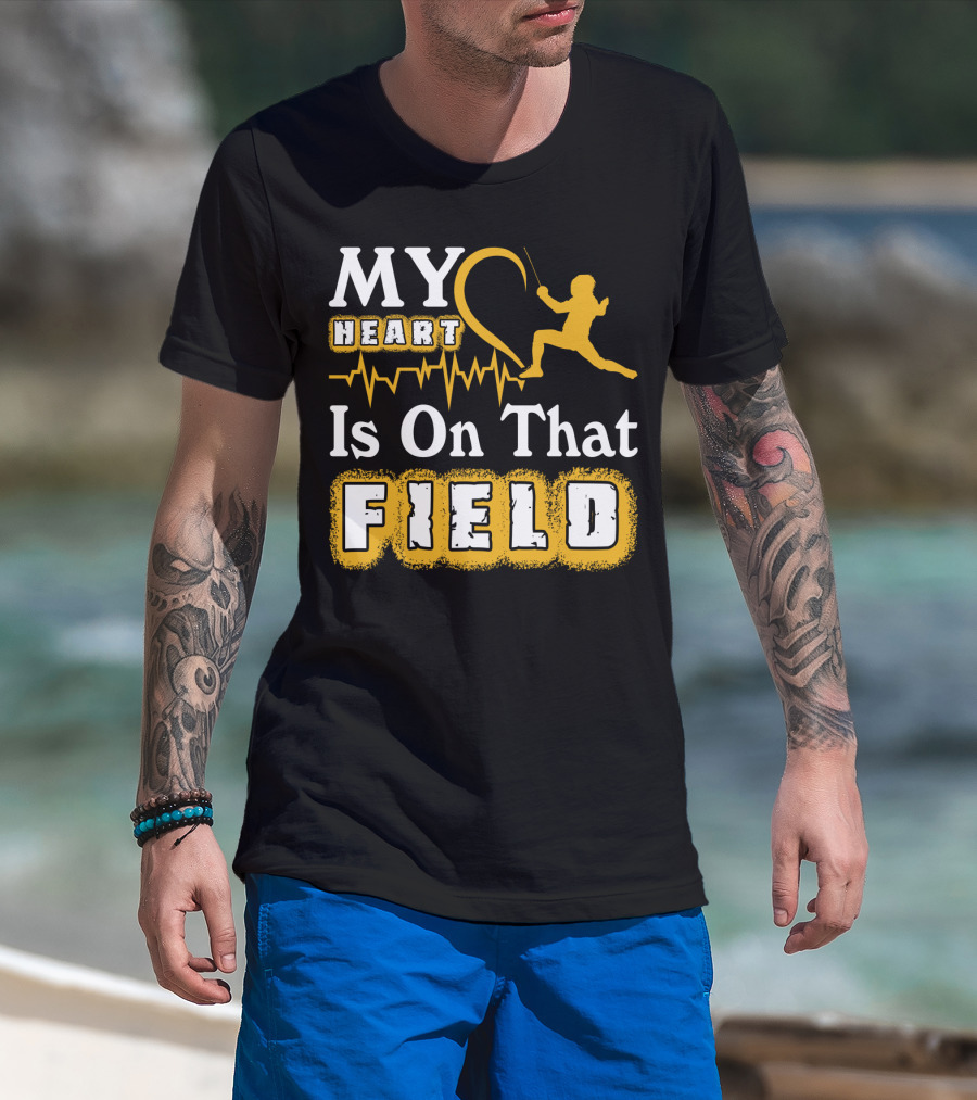 My Heart Is On That Field Fencing Silhouette With Heartbeat Line T-Shirt