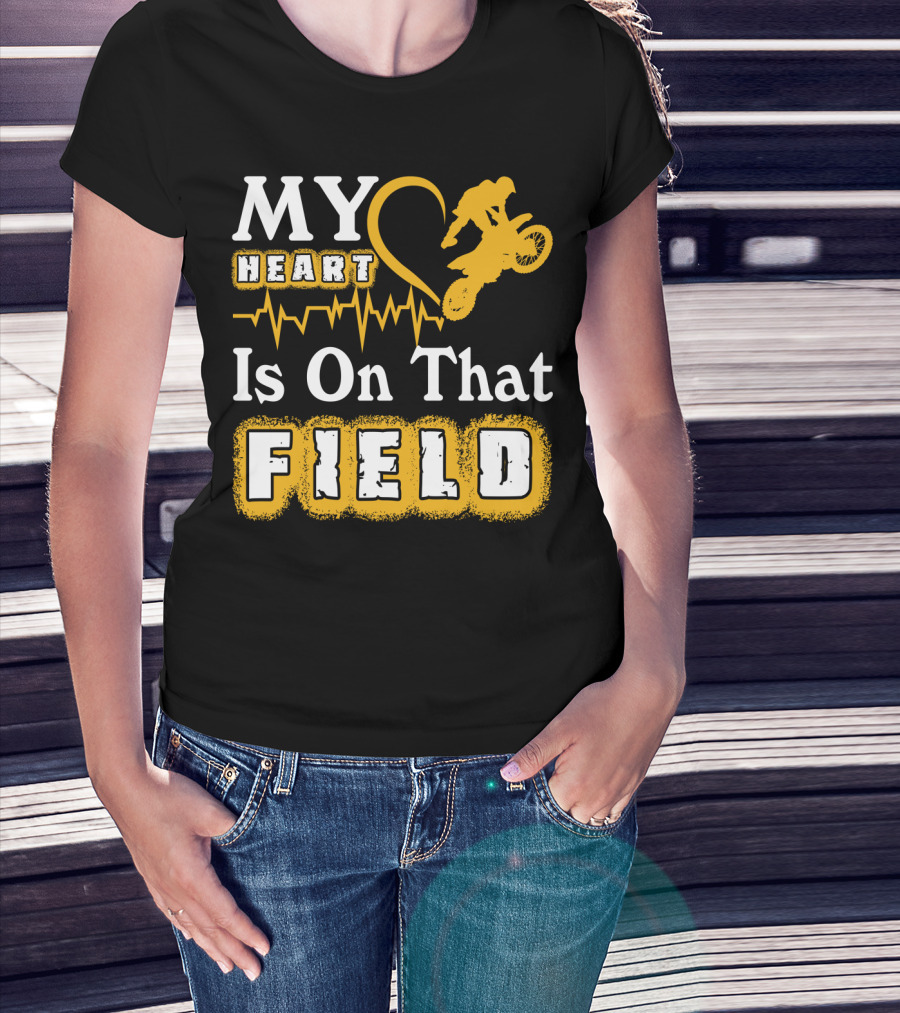 My Heart Is On That Field Dirt Bike Racing Motocross Rider Heartbeat T-Shirt