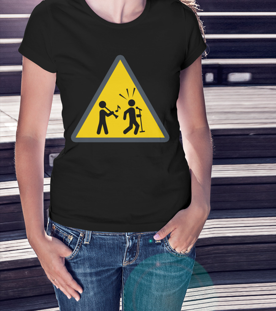 Clarinet Player Warning Sign Icon With Music Notes And Microphone T-Shirt