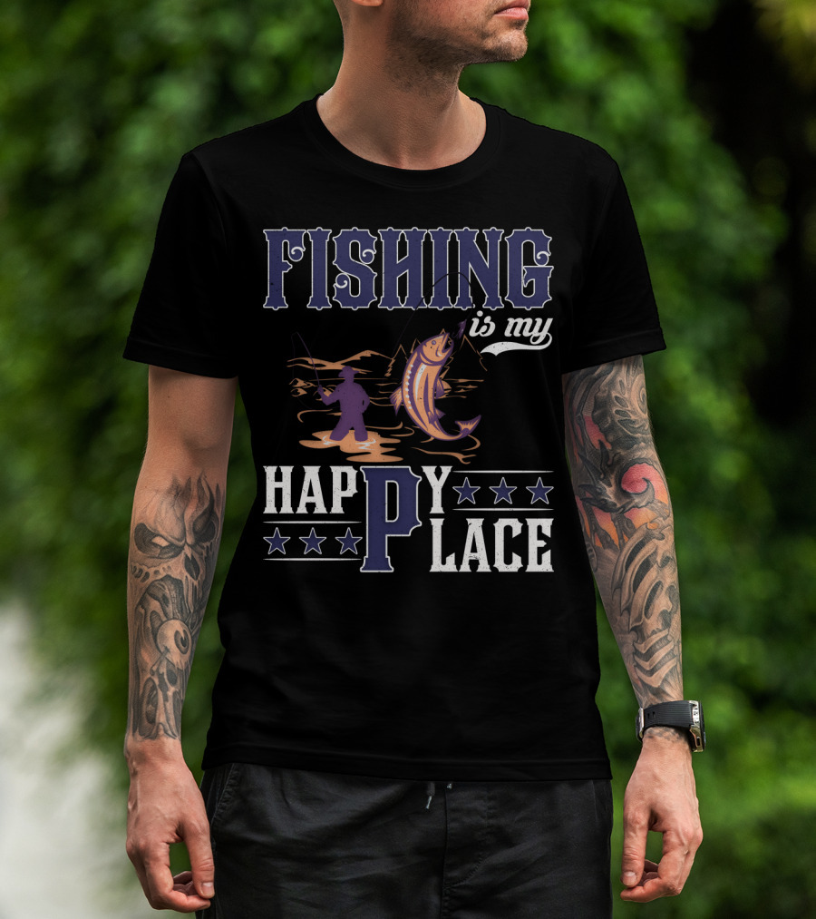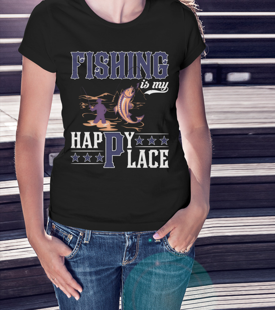 Fishing Is My Happy Place With Angler And Fish T-Shirt