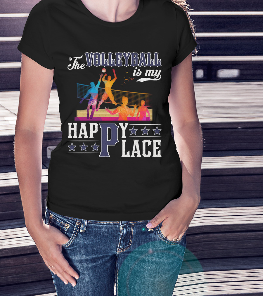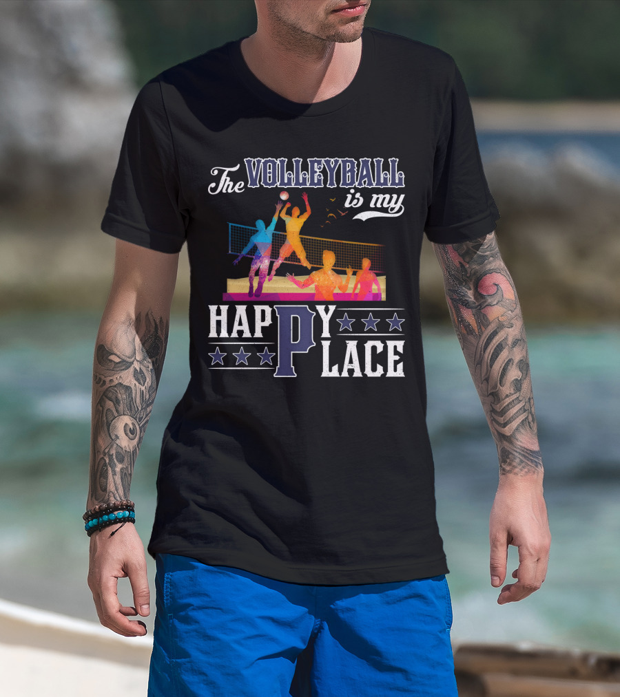 The Volleyball Is My Happy Place Colorful Players Action Scene T-Shirt