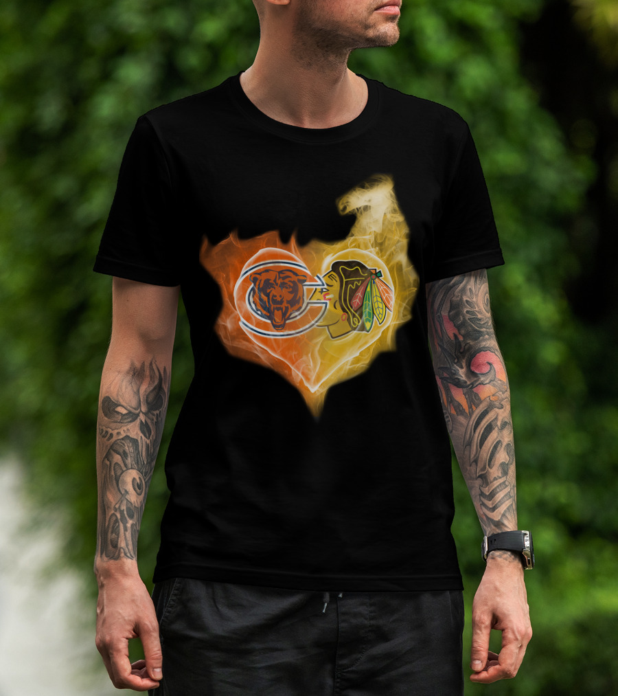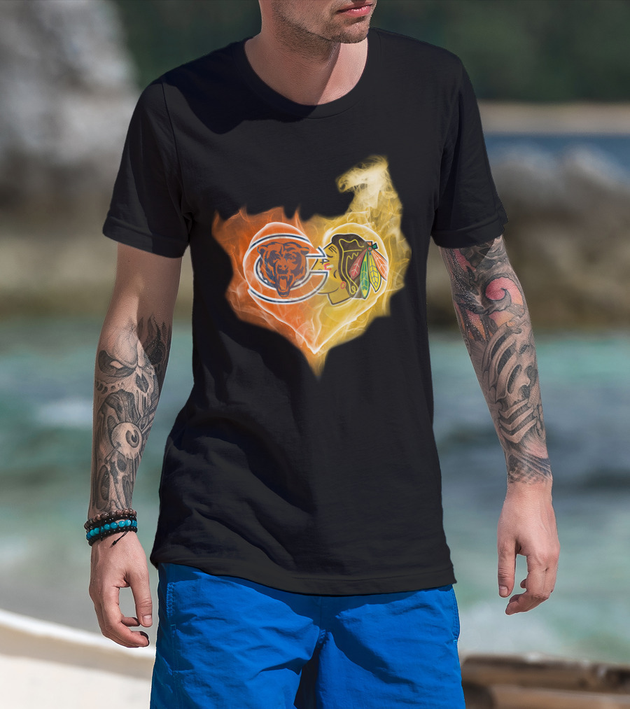 Bears Chicago Blackhawks Fire Heart T-Shirt
