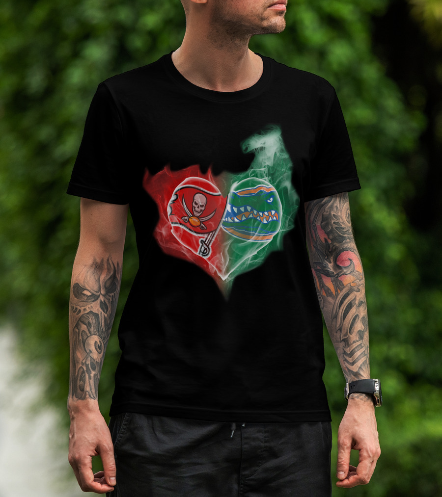 Buccaneers And Florida Gators Heart Smoke Logo Combination T-Shirt