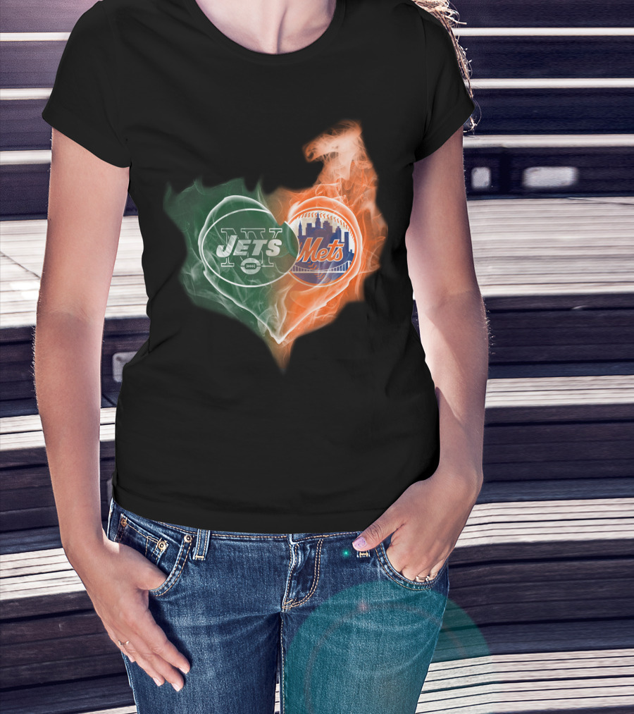 New York Jets Mets Heart Smoke Logo Fusion T-Shirt