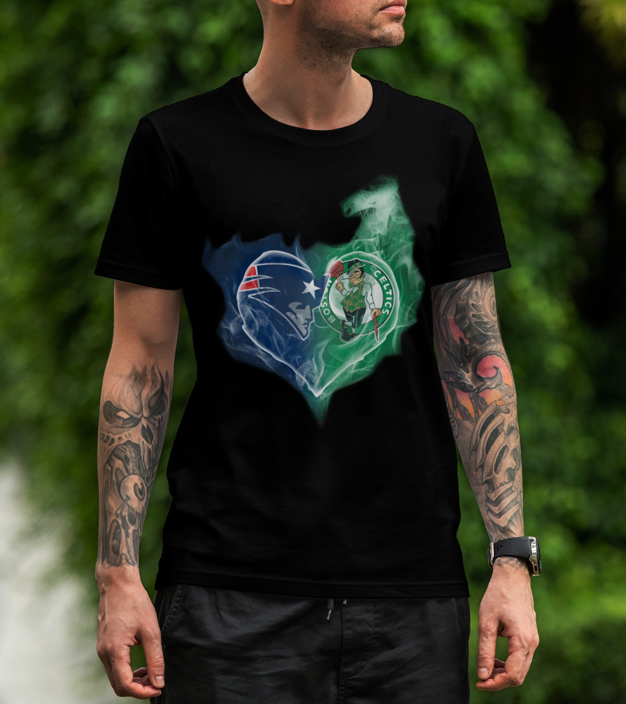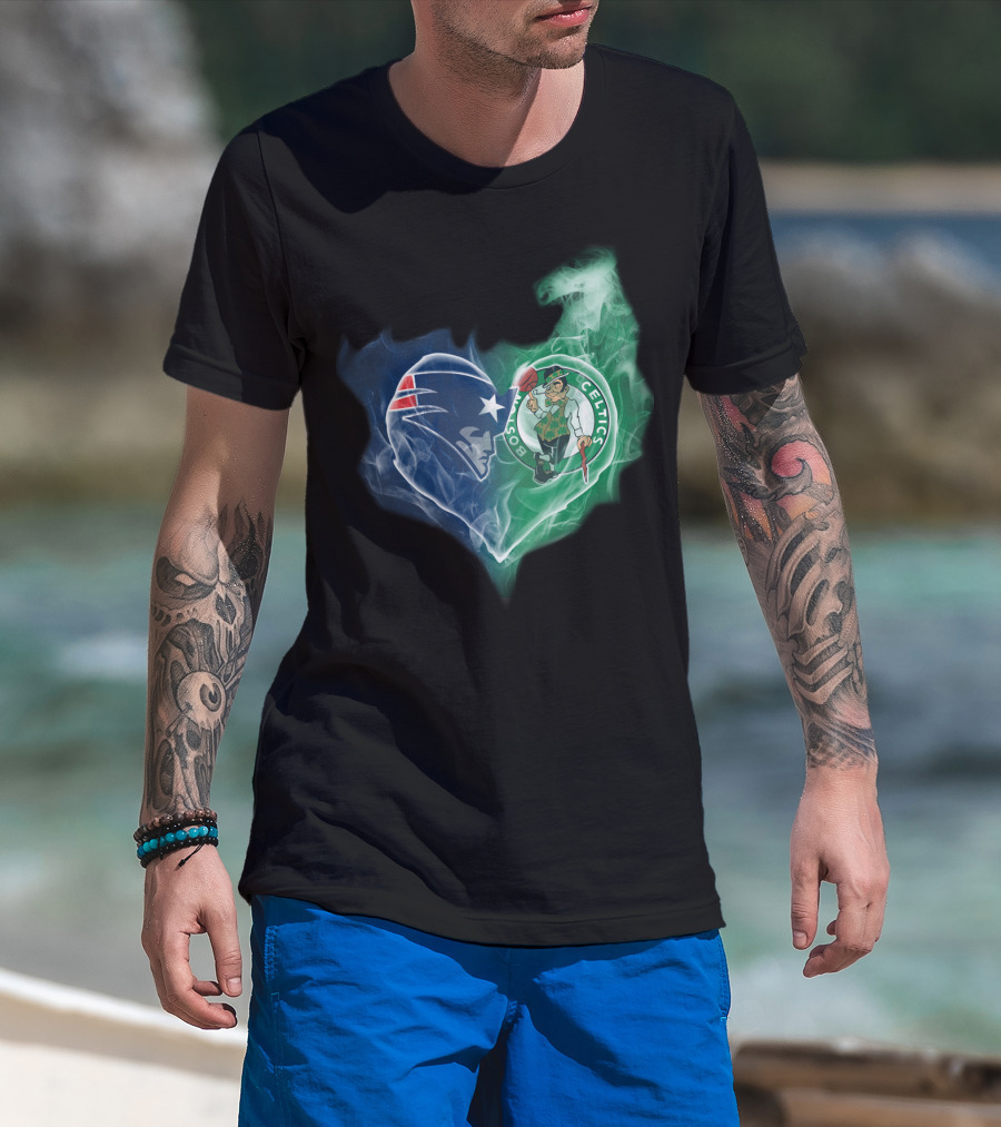Patriots Boston Celtics Heart Smoke T-Shirt